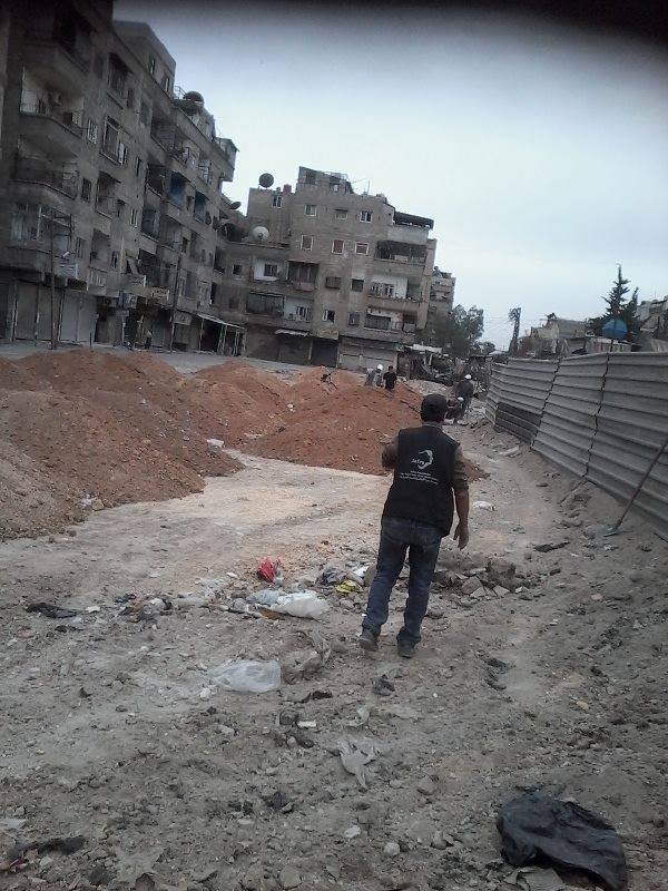 Il n’y a plus de travail à l’intérieur du camp. Les routes sont fermées : pas de déplacement, pas de commerce possible. Le problème majeur est le prix élevé de la nourriture, car la contrebande de denrées est apparue. Il y a un mois et demi, un kilo de riz coûtait environ 12.000 livres syriennes (LS), l’équivalent d’à peu près 70$. Le tarif a baissé légèrement le mois dernier, mais il faut se dire qu’il coûtait 1$ voici trois ans, qu’il coûte 1$ dans les zones qui entourent le camp, soit soixante-dix fois moins ! Un litre de fioul pour groupe électrogène revient à environ 600/700 LS et coûte seulement 100 LS dans Damas. De toutes façons, il n’en reste presque plus à l’intérieur du camp. Certaines ONG – dont notre Fondation JAFRA – ont mis en place des projets agricoles d’auto-suffisance à l’intérieur du camp. Cela n’a pas trop bien marché l’hiver dernier à causes du temps, mais cela va beaucoup mieux. Il y a ceux qui ramassent de l’herbe dans les prés, et nous avons recensé 5 morts dûs aux snipers du régime qui surveillent ces prés. Les autres se contentent d’exister à l’intérieur de Yarmouk, fouillent les maisons abandonnées à la recherche de nourriture, une poignée de riz ou de farine, quelques épices, n’importe quoi qui puisse se manger. Voilà comment vivent ces gens…