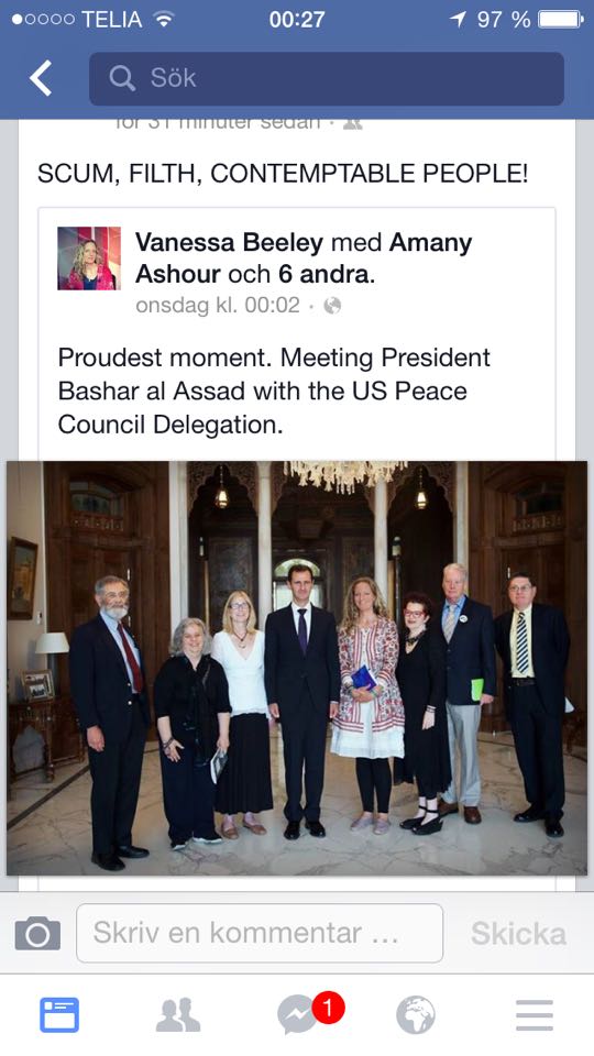Assad cannot govern Syria; his regime relies on a policy of collective punishment through sieges and the indiscriminate use of air power against civilian populations in areas liberated from regime control. Assad and his supporters’ crimes against humanity are widely documented by Amnesty International, Human Rights Watch and Doctors Without Borders. Denying overwhelming evidence, UNAC publicly laments the “demonization” of Assad, all the while demonizing the democratic opposition as “Islamic extremists” and “foreign financed terrorists”.
