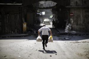 This shot, “Hardship of life” by Mehmet Aslan, portrays Mustafa and his father in a refugee camp. Mustafa’s father lost a leg due to a barrel bomb dropped from a regime helicopter.