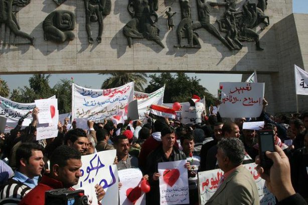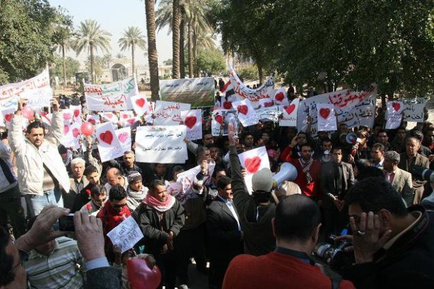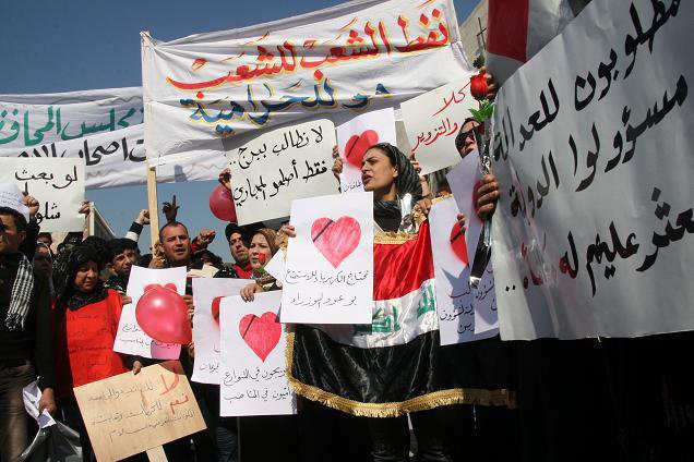 Young Iraqis held a Valentine’s Day rally in Baghdad on Monday to call on their leaders to love the war-battered country rather than rob its resources.”We do not want Valentine’s Day to be only one day of love but a celebration for reform, democracy, citizenship and freedom”.
