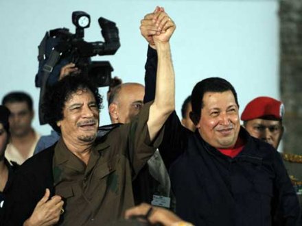 Today my inbox has gotten another jolt. It seems that the “Hugo Chavez International Foundation for Peace, Friendship and Solidarity” is supporting Muammar Gheddafi and accusing the uprising in Libya as being the work of foreign services. Like classic dogmatic leftist propaganda, their press release attempts to equate the person of Gheddafi with the nation of Libya. Like all pieces of dogmatic propaganda, it contains some elements of truth, such as lamenting the lack of media attention for the crimes against humanity committed against the Palestinian people as well as the tendency of the forces of power in the West to attempt to hijack any popular movement and take control of it. As well, its statements about Gheddafi’s son being a benefactor in an NGO are also true, as his foundation donated 180 vehicles to the Viva Palestina mission as well as having assumed the exaggerated costs of the doomed and ill-planned Road to Hope Convoy, which did not factor in the amount of money to actually bring the goods to Gaza by boat, as is (unfortunately in these horrible times we live in) the only means possible. However aside from some facts and truth in the press statement, the core truth is that once again, the “left” sides by the power of a leader who states himself to be anti-imperialist, (despite evidence to the contrary) and instead tyrannically controls the business and wealth in a sort of State Capitalism where only a few gain and where democracy is seen as counter to the interests of the State.