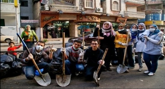 I have met a guy who still has 9 rubber bullets in his body, and came to clean. I have met a group of strangers who helped me come home, all men, and I don’t even know their names. I have seen the disabled trying to clean every corner in Tahrir. I have seen strangers holding hands to prevent people from stepping on the wet pavement after painting it. I have seen very rich people holding dirt with their bare hands. I have seen strangers stopping other strangers and saying, “keep my phone with you, and if my wife calls, answer”. And I have seen their phones given back to them after 5 hours. I have seen old people who could not help, but chose to stay to encourage us. I have seen a lot of people, and I couldn’t know who are the Christians, the Muslim, the poor, the rich, the educated or those who haven’t had much schooling!